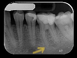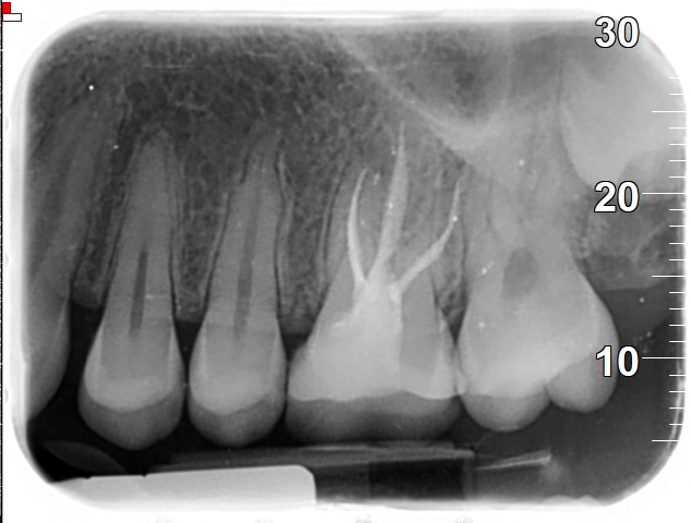 המטופלת סבלה מכאבים מאוד חזקים בשן, מעירים משינה. על פי דרכי הטיפול המסורתיות, היה צריך לבצע טיפול שורש בשן. הוחלט לנסות להימנע מטיפול שורש. כיום, 10 שנים אחרי, זו השן היציבה ביותר בפה של המטופלת הזו
